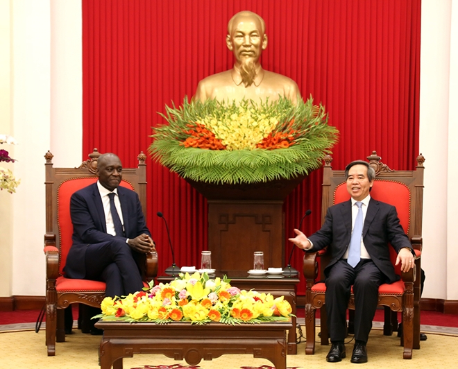 | Đồng chí Nguyễn Văn Bình và ông Makhtar Diop, Phó Chủ tịch Ngân hàng Thế giới. |