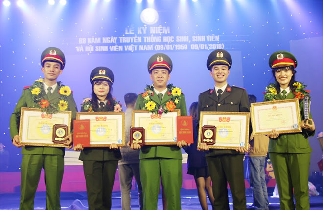 | Có 7 sinh viên đến từ các trường CAND được vinh danh tại buổi lễ. Học viên Hà Kiều Trang đến từ Học viện CSND đạt danh hiệu "Sinh viên 5 tốt". Các học viên Nguyễn Thành Tuân (Học viện ANND), Nguyễn Văn Tý (Học viện CSND), Lê Thị Vân Anh (Đại học Phòng cháy chữa cháy), Phan Đình Linh (Đại học CSND), Kim Thị Ngọc (Đại học Kỹ thuật - Hậu cần CAND) và Lê Ngọc Hà (Đại học ANND) được trao Giải thưởng "Sao Tháng Giêng". |