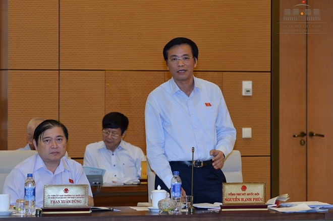 Thảo luận tại phiên họp, Tổng Thư ký Quốc hội Nguyễn Hạnh Phúc cho rằng, việc biếu, tặng không nên cấm mà là quan trọng là sử dụng tài sản được biếu, tặng như thế nào. “Sử dụng cho cá nhân thì không được nhưng thanh lý đi làm việc công thì cũng được. Do đó cần quan tâm việc biếu, tặng từ thiện” – ông Phúc nói.