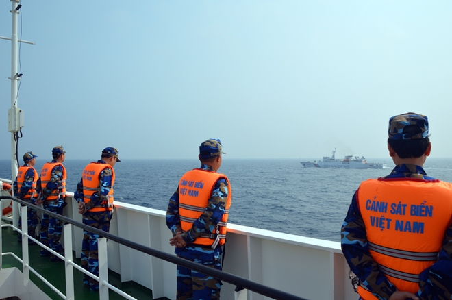 | Cảnh sát biển Việt Nam trong một chuyến kiểm tra liên hợp nghề cá trên vịnh Bắc Bộ giữa Việt Nam – Trung Quốc. |