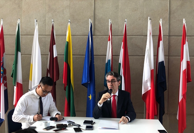 | Đại sứ EU tại Việt Nam Giorgio Aliberti (phải) chia sẻ về những ưu tiên trong nhiệm kỳ của mình. |