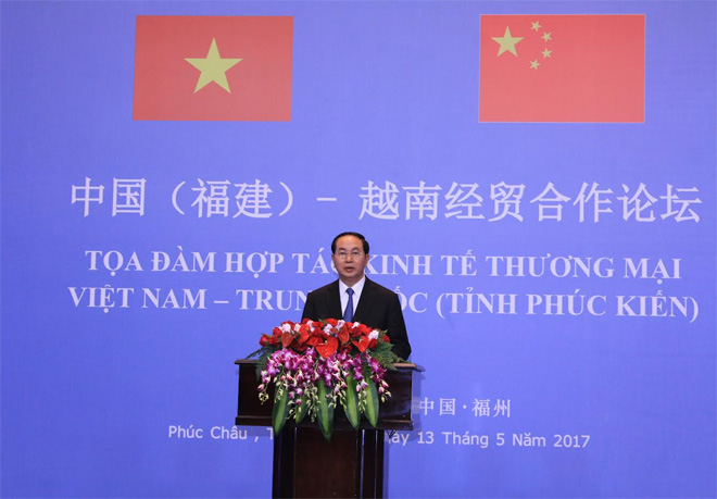 Khẳng định chủ trương nhất quán là bạn với tất cả các nước, Chủ tịch nước Trần Đại Quang nhấn mạnh, Việt Nam kiên định hội nhập và hợp tác quốc tế trên cơ sở bình đẳng, tôn trọng chủ quyền, lợi ích của mỗi nước; ưu tiên thúc đẩy quan hệ hợp tác về kinh tế, thương mại và đầu tư với Trung Quốc. Trên cơ sở kết quả hợp tác tốt đẹp thời gian qua, Việt Nam mong muốn hai nước chủ động xây dựng định hướng, kế hoạch, giải pháp và lĩnh vực hợp tác cụ thể với tầm nhìn chiến lược dài hạn, tối đa hóa thế mạnh của mỗi nước, đặc biệt trong trong giai đoạn chủ nghĩa bảo hộ đang có dấu hiệu trỗi dậy hiện nay. Vì vậy, cộng đồng doanh nghiệp hai nước cần tiếp tục đóng vai trò khởi xướng các ý tưởng sáng tạo, tạo xung lực mới trong hợp tác kinh tế, nhất là về thương mại và đầu tư.