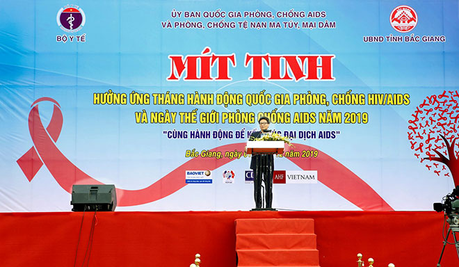Ngày 1-12, tại Bắc Giang, Ủy ban quốc gia Phòng chống AIDS và phòng, chống ma túy, mại dâm, Bộ Y tế phối hợp với UBND tỉnh Bắc Giang tổ chức lễ mít tinh hưởng ứng “Tháng hành động quốc gia phòng, chống HIV/AIDS” và “Ngày Thế giới phòng, chống AIDS” năm 2019.