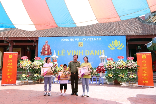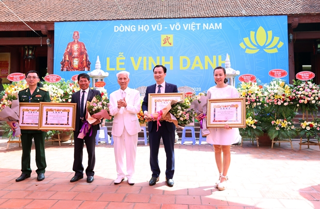 Tại buổi Lễ, Thượng tướng Nguyễn Văn Thành (Vũ Văn Thành) đã trao Bằng “Vũ tộc tinh hoa” và Bằng khen cho cho các cháu đại diện cho 92 cháu học sinh, sinh viên tiêu biểu đạt giải nhất cấp tỉnh trở lên của Dòng họ Vũ - Võ.