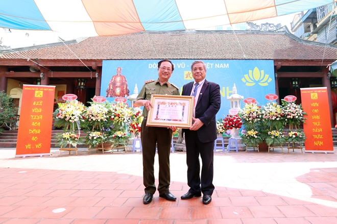 | GS.TSKH, Nhà giáo nhân dân Vũ Minh Giang, Chủ tịch HĐDH Vũ-Võ Việt Nam trao Bằng “Vũ tộc tinh hoa” cho Thượng tướng Nguyễn Văn Thành. |