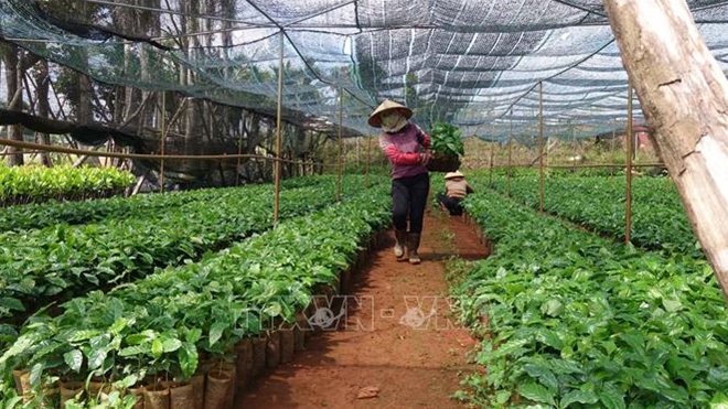 | Năm 2018, tỉnh Đắk Nông đã phối hợp với các đơn vị, địa phương triển khai nhiều chương trình hỗ trợ người nông dân sản xuất cà phê bền vững. Ảnh: Anh Dũng/TTXVN |