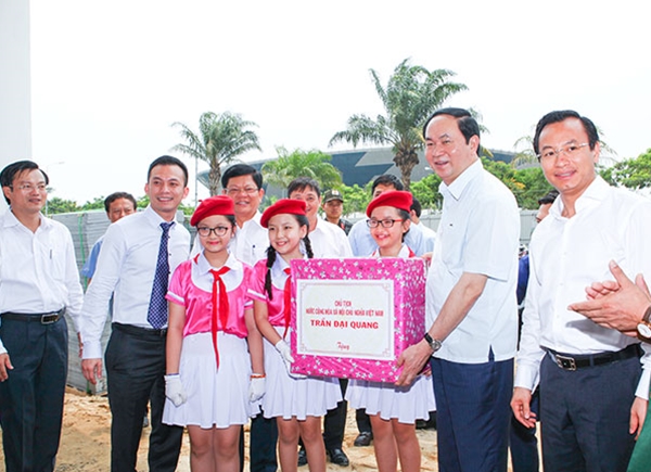 | Chủ tịch nước Trần Đại Quang trao quà tặng các cháu thiếu nhi TP Đà Nẵng. |