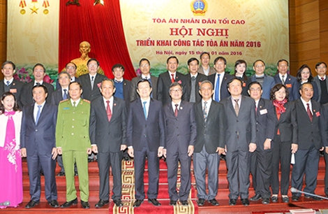 Đồng tình với phương hướng, nhiệm vụ trọng tâm công tác của Tòa án trong năm 2016, Chủ tịch nước lưu ý, Ban cán sự Đảng, lãnh đạo Tòa án nhân dân tối cao cần phối hợp chặt chẽ với các cấp ủy Đảng, chính quyền các địa phương, lãnh đạo, chỉ đạo các Tòa án tổ chức quán triệt, thực hiện nghiêm túc Nghị quyết Đại hội đại biểu lần thứ XII của Đảng; tiếp tục triển khai thực hiện Hiến pháp năm 2013, các Nghị quyết của Đảng, các Luật, Nghị quyết của Quốc hội, Pháp lệnh của Ủy ban Thường vụ Quốc hội về công tác tư pháp, cải cách tư pháp.