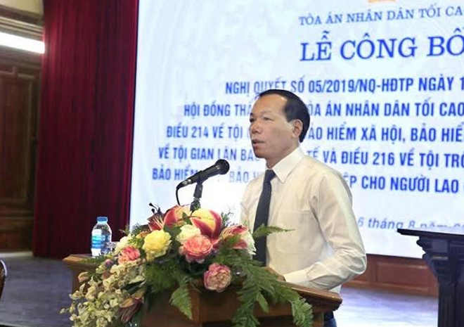 Thông tin này được nêu ra sáng 16-8, trong Lễ công bố Nghị quyết số 05/2019/NQ-HĐTP ngày 15-8-2019 của Hội đồng Thẩm phán Toà án Nhân dân Tối cao hướng dẫn áp dụng Điều 214 về tội gian lận bảo hiểm xã hội (BHXH), bảo hiểm thất nghiệp (BHTN); Điều 215 về tội gian lận bảo hiểm y tế (BHYT); Điều 216 về tội trốn đóng BHXH, BHYT, BHTN của Bộ luật Hình sự do Toà án Nhân dân tối cao tổ chức. Nghị quyết có hiệu lực từ 1-9-2019.