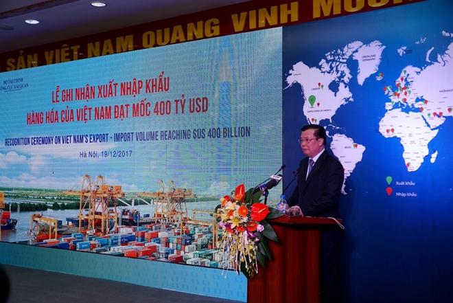 Phó Tổng cục trưởng Tổng cục Hải quan Nguyễn Dương Thái cho biết, ngày 12- 12, hệ thống hải quan đã ghi nhận XNK hàng hoá của Việt Nam đạt mốc 400 tỷ USD. Nhìn lại chặng đường XNK của Việt Nam trong những năm qua cho thấy bước tiến mạnh mẽ của hoạt động XNK. Năm 2001, tổng kim ngạch XNK của cả nước mới chỉ ở con số khiêm tốn 30 tỷ USD. Sau 6 năm (tới năm 2007), tổng kim ngạch XNK cả nước đã đạt con số 100 tỷ USD sau khi Việt Nam trở thành thành viên chính thức của WTO. Bốn năm sau (năm 2011) quy mô XNK đã tăng gấp đôi, đạt 200 tỷ USD. Con số 300 tỷ USD tiếp tục đạt được với khoảng thời gian tương tự sau 4 năm (năm 2015).