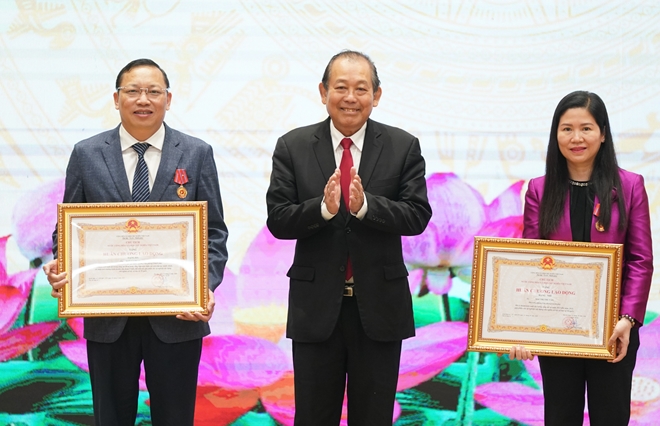 | Phó Thủ tướng thường trực Trương Hòa Bình trao Huân chương Lao động tặng các cá nhân. |