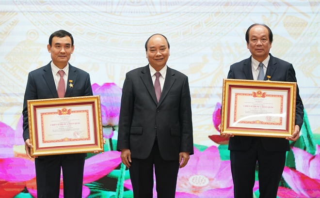 | Thủ tướng Nguyễn Xuân Phúc trao danh hiệu Chiến sỹ thi đua toàn quốc tặng Bộ trưởng, Chủ nhiệm Văn phòng Chính phủ Mai Tiến Dũng và Phó Chủ nhiệm Văn phòng Chính phủ Nguyễn Xuân Thành. |