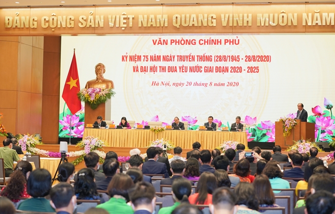 Sáng 20/8, Thủ tướng Nguyễn Xuân Phúc đã dự Lễ kỷ niệm 75 năm Ngày truyền thống Văn phòng Chính phủ (28/8/1945-28/8/2020) và Đại hội thi đua yêu nước giai đoạn 2020-2025.