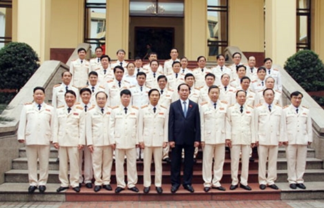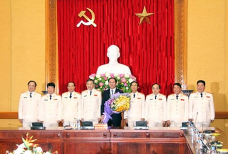 | Lãnh đạo Bộ Công an tặng hoa chúc mừng Chủ tịch nước Trần Đại Quang. |