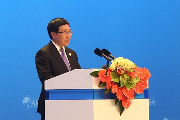 Đặc biệt, theo Phó Thủ tướng Phạm Bình Minh, củng cố môi trường hòa bình và ổn định là tiền đề không thể thiếu đối với phát triển của châu Á; mọi bất đồng, tranh chấp cần được giải quyết bằng biện pháp hòa bình, tuân thủ luật pháp quốc tế; khẳng định Việt Nam luôn nỗ lực hợp tác với các nước theo tinh thần tôn trọng và tin cậy lẫn nhau, cùng chia sẻ trách nhiệm trước những vấn đề chung của thế giới và khu vực.