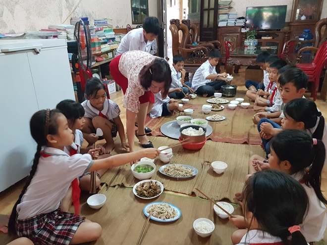 | Bữa ăn ấm áp tại gia đình cô giáo Hạnh Nguyên. |