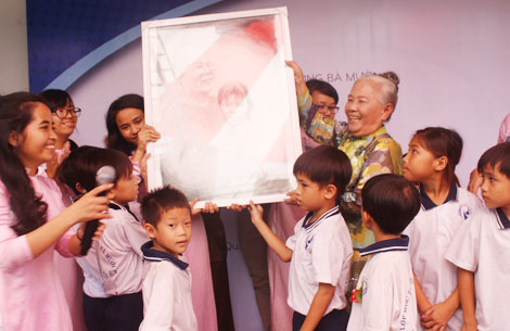 | Bà Mười hạnh phúc trong ngày khai giảng. |