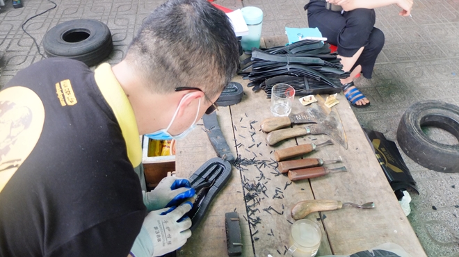 Nhiều năm theo bố vợ học nghề, anh Cường vẫn "chân trong chân ngoài", vừa đảm nhận vai trò của một kỹ sư công nghệ thông tin, vừa đi tìm những người có cùng sở thích để cùng ông "Vua dép lốp" đào tạo ra lứa thợ trẻ kế cận.