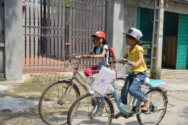 | Các em nhỏ trên đường tới lớp. |
