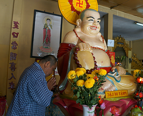 | Những ngày không có việc làm, Hải "đen" lại đi chùa niệm Phật. |