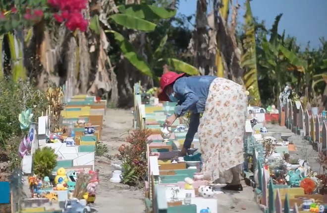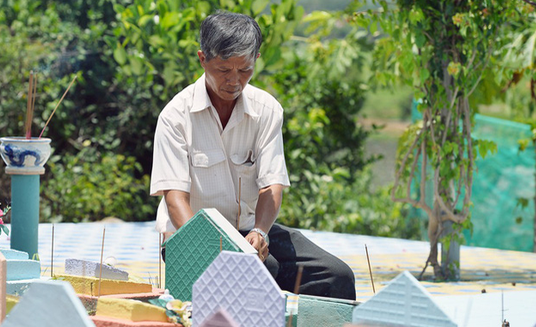 | Ngày nào ông Phúc cũng ra nghĩa trang thăm các “con”. |