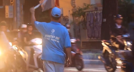 Giữa cái nóng như nung vào giữa trưa, "hiệp sĩ giao thông" Nguyễn Văn Linh như cây cột đứng giữa dòng xe cộ chật như nêm tại ngã tư đường Điện Biên Phủ - Trần Quốc Thảo (quận 3, TP Hồ Chí Minh). Từng động tác khua cây, múa tay, điều tiết giao thông của anh rất uyển chuyển, chuyên nghiệp. Tấm áo có logo hiệp sĩ giao thông ướt đẫm mồ hôi.
