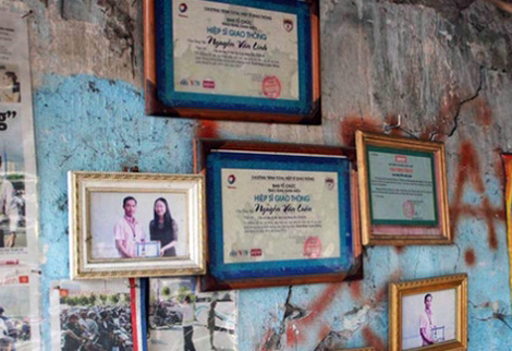 Bức tường là nơi anh Linh treo những tấm giấy khen, bài báo viết về mình.