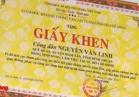 Giấy khen của Sở Giao thông vận tải TP Hồ Chí Minh tặng anh Nguyễn Văn Linh.