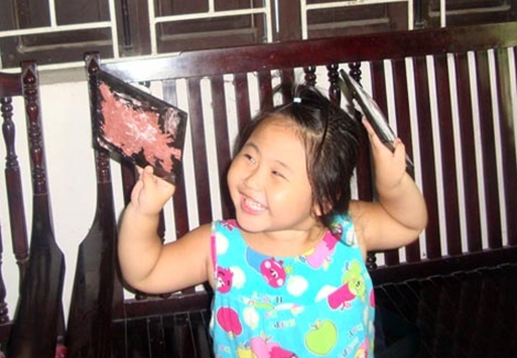 Lúc này bất chợt cô bé cháu nội ông cũng ở trong phòng vẽ chạy ra. Nó mới ba tuổi, là con gái của họa sĩ Trần Tiến Thành, người con trai thứ hai của nghệ nhân Trần Thành Đạt. Hai tay bé giơ hai bức tranh vừa tô mầu xong. Một bức tranh trừu tượng, tôi cười nói vui, nhưng nghệ nhân Trần Thành Đạt bước đến khẳng định, đó sẽ là một bức tranh sơn khắc trong tương lai. Ông nghĩ về lứa thứ ba sẽ tiếp nối nghiệp ông là thế. Những tia sáng tràn ngập hy vọng ùa lên mắt ông làm tôi rưng rưng với niềm vui cùng với nụ cười rạng rỡ của cô bé.