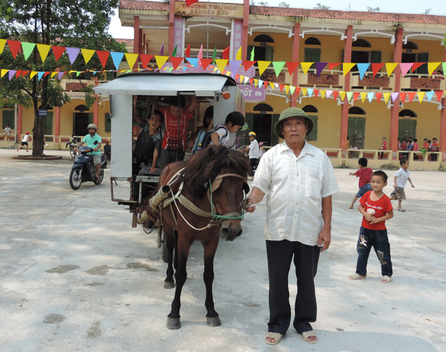 "Với địa hình đường làng ngõ xóm nhỏ, dùng xe ngựa là cơ động nhất. Hơn nữa xe ngựa di chuyển không quá nhanh, có thể đảm bảo được cho các cháu. Thế rồi còn đảm bảo môi trường nữa chứ"- ông Khánh phân tích.