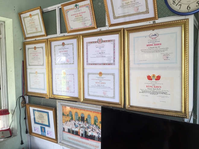 | Những tấm bằng khen được treo đầy trạm gác. |