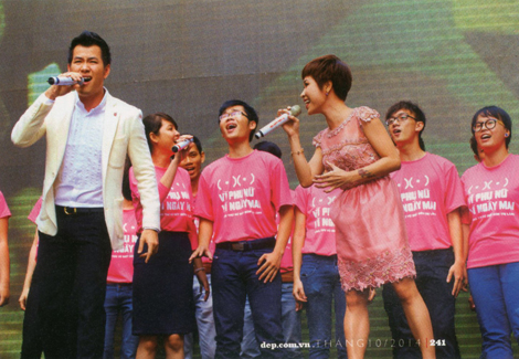 | Các nghệ sĩ tham gia chiến dịch tuyên truyền về căn bệnh ung thư vú, được tổ chức tháng 10/2014 tại TP HCM. |