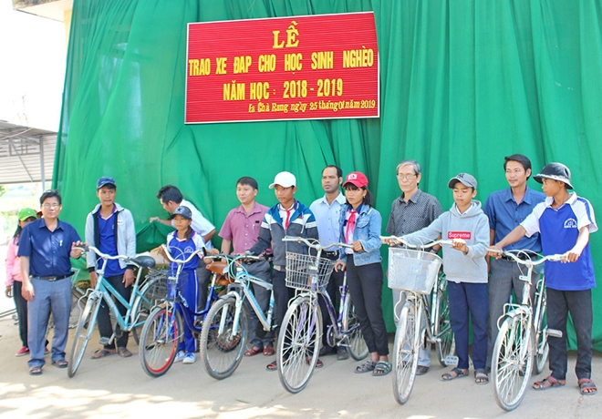 Đầu năm học 2018-2019, tôi thật sự bất ngờ vì Y Chép được thầy giáo Sơn tặng chiếc xe đạp khi vào lớp 7A Trường THCS Đinh Núp. Đâu riêng Y Chép mà vợ chồng tôi vui lắm, xúc động lắm ! Tôi cảm ơn thầy giáo Sơn và Ban giám hiệu nhà trường đã giúp đỡ con tôi thoát cảnh đi bộ mỏi chân, đuối gối". Dứt lời, Ma Côn cười hể hả, trong khi Y Chép dắt chiếc xe đạp ra ngõ để đến trường.