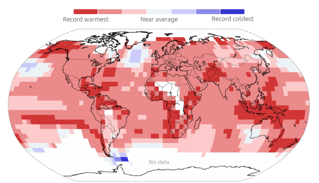 Một số địa điểm có nhiệt độ cao kỷ lục trên thế giới năm 2016: 42,7 độ C tại Pretoria, Nam Phi, được ghi nhận vào tháng Một; tại Mae Hong Son, Thailand ghi nhận mức nhiệt 44,6 độ C hồi ngày 28 tháng Tư; Phalodi ở Ấn Độ hồi tháng Năm đạt 51 độ C hay tại Mitribah ở Kuwait đạt mức 54 độ C.