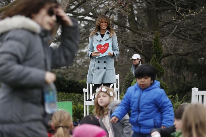 | Tổng thống Mỹ và Đệ nhất Phu nhân tại sự kiện. Lễ Lăn trứng Phục sinh năm nay được đích thân bà Melania chuẩn bị. Đệ nhất Phu nhân luôn thể hiện mình là một người chu đáo trong chuẩn bị các sự kiện tại Nhà Trắng. Bà từng đảm nhận việc trang hoàng cho ngôi nhà quyền lực nhất nước trong những dịp như Giáng sinh hay Halloween. |