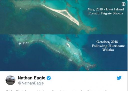 Khi so sánh các bức ảnh vệ tinh chụp khu vực bãi cạn Frigate Pháp (French Frigate Shoals), các nhà khoa học xác nhận hòn đảo rộng 4.45 hecta đã biến mất sau cơn bão lớn.