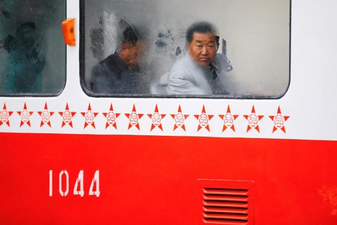 | Các nữ nhân viên nhà ga xe lửa đang chuẩn bị công việc kiểm tra các hành khách nước ngoài nhập cảnh vào Triều Tiên. Ảnh: Reuters |