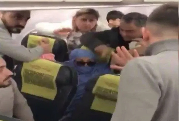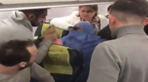 | Một phụ nữ mang khăn che mặt đã khiến các hành khách trên máy bay gặp một phen hoảng loạn khi dọa cho nó nổ tung. |