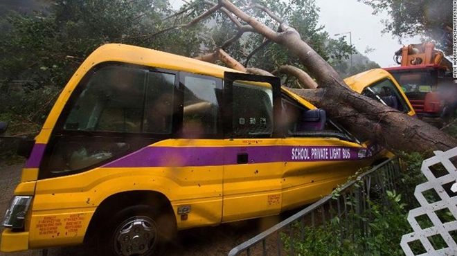 Với sức gió giật 223km/h, Mangkhut đổ bộ vào Hongkong lúc 16h (giờ địa phương) khiến cho mọi hoạt động khiến nhiều nhà cao tầng tại đây rung lắc, cây cối bị quật đổ và đường phố chìm trong biển nước.