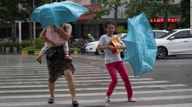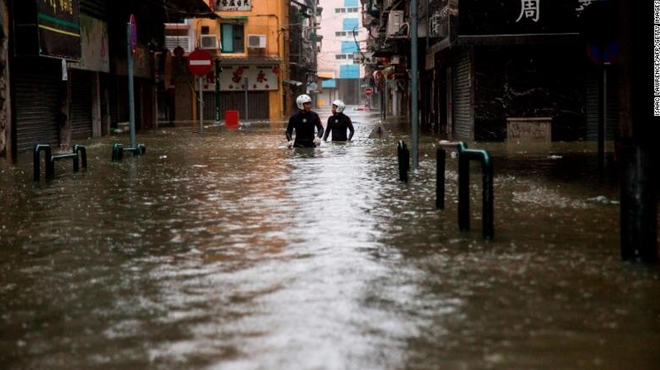CNN ngày 16-9 đưa tin, siêu bão Mangkhut đã đổ bộ lần lượt vào Hongkong lúc 16h (giờ địa phương) với sức gió lên tới 223km/h, và đổ bộ vào tỉnh Quảng Đông lúc 17h với sức gió giật cấp 14, khiến nhiều nhà cao tầng tại đây rung lắc, cây cối bị quật đổ và đường phố thì chìm trong biển nước.