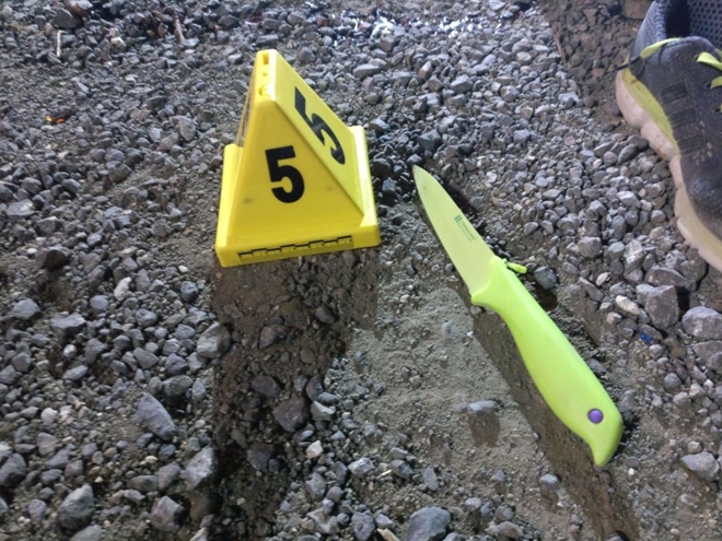 | Con dao hung thủ sử dụng để tấn công nữ cảnh sát Malka xuất hiện tại hiện trường. Ảnh: Whatsapp |