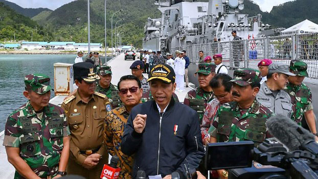 | Tổng thống Indonesia Widodo trả lời phỏng vấn tại một căn cứ quân sự trên đảo Natuna hồi tháng 1. |