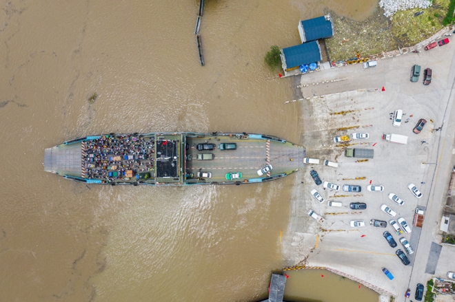 | Người dân tại thành phố Cửu Giang, tỉnh Giang Tây được sơ tán hôm 13/7 để tránh mưa lũ. (Ảnh: Chinadaily) |