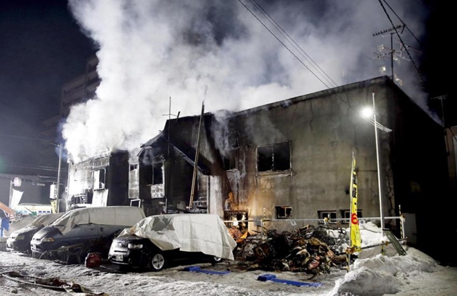 Khu nhà trọ ở phía Bắc tỉnh Hokkaido, bị thiêu rụi gần như hoàn toàn, Thông tấn Kyodo đưa tin hôm 1-2.