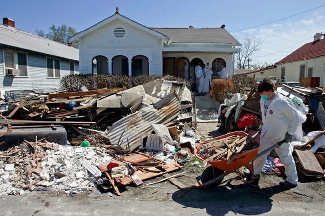 Bão Katrina (2005), cơn bão lịch sử của nước Mỹ hoành hành tại phía Nam Louisiana và Nam Mississippi. gây tổng thiệt hại lên đến 75 tỷ USD tại New Orleans và bờ biển Mississippi, 1.200 người thiệt mạng. Ảnh AP |