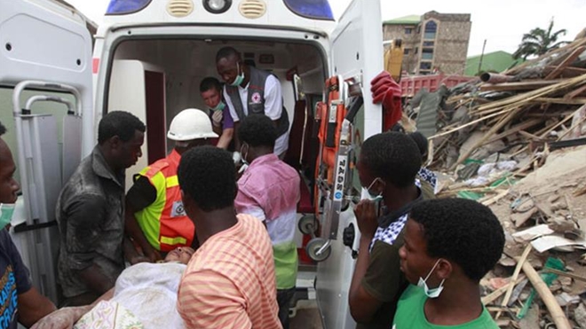 | Vụ tai nạn xảy ra ở nhà thờ Reigners Bible Church tại thủ phủ Uyo của bang Akwa Ibom, miền nam Nigeria. Ảnh: NAJI |