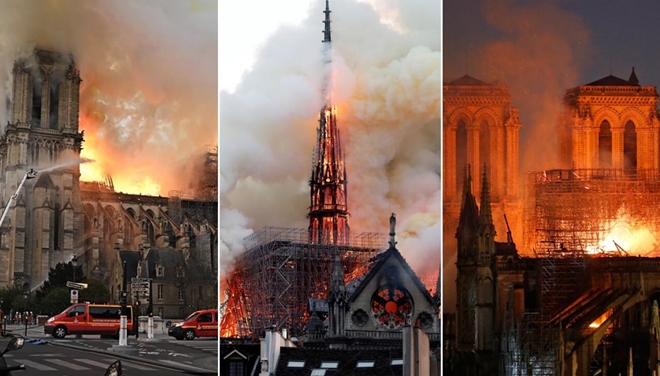 Vào lúc 18h50 phút hôm 15-4 giờ địa phương (tức 23h50 phút giờ Việt Nam), một vụ cháy lớn đã xảy ra tại Nhà thờ Đức Bà Paris, khiến công trình kiến trúc quan trọng này bị thiệt hại nặng nề, phần ngọn tháp của Nhà thờ bị đổ sập.