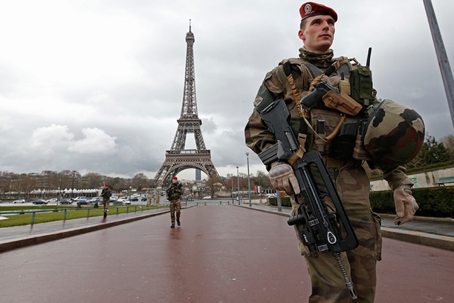 | Cảnh sát bảo vệ an ninh quanh khu vực tháp Eiffel (Ảnh: Reuters) |
