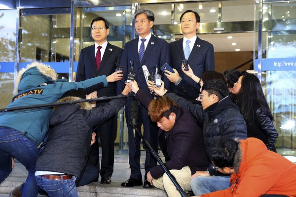 | Trả lời phỏng vấn báo chí bên ngoài Văn phòng,các quan chức Bộ Thống nhất Hàn Quốc hy vọng sự kiềm chế của CHDCND Triều Tiên sẽ là tín hiệu tích cực cho đối thoại.Ảnh: AP |