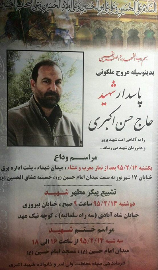 Theo báo thông tấn Sepah News, trang thông tin chính thống của Lực lượng Vệ binh Cách mạng Hồi giáo Iran, một lễ tang trang nghiêm đã được tổ chức dành cho Trung tá Hassan Akbari ở Tehran vào ngày 2-5.